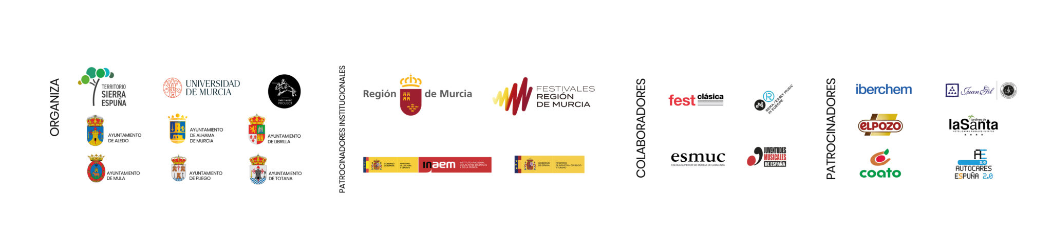 ECOS Festival de Sierra Espuña es un proyecto organizado por la Mancomunidad de Servicios Turísticos de Sierra Espuña, la Universidad de Murcia y Early Music Project, y subvencionado por el Ministerio de Industria, Comercio y Turismo, el Ministerio de Cultura, el Gobierno de la Región de Murcia a través de su Marca Festivales y los Ayuntamientos del Territorio Sierra Espuña (Aledo, Alhama de Murcia, Librilla, Mula, Pliego y Totana). Cuenta con el patrocinio de Iberchem, El Pozo, Coato, Bodegas Juan Gil y Autocares Sierra Espuña.